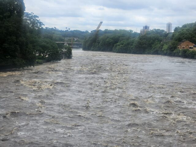 Segundo informações do Sistema de Monitoramento Hidrológico, o rio apresenta correnteza mais intensa e água turva, resultado do grande acúmulo de chuva nas cabeceiras e afluentes.