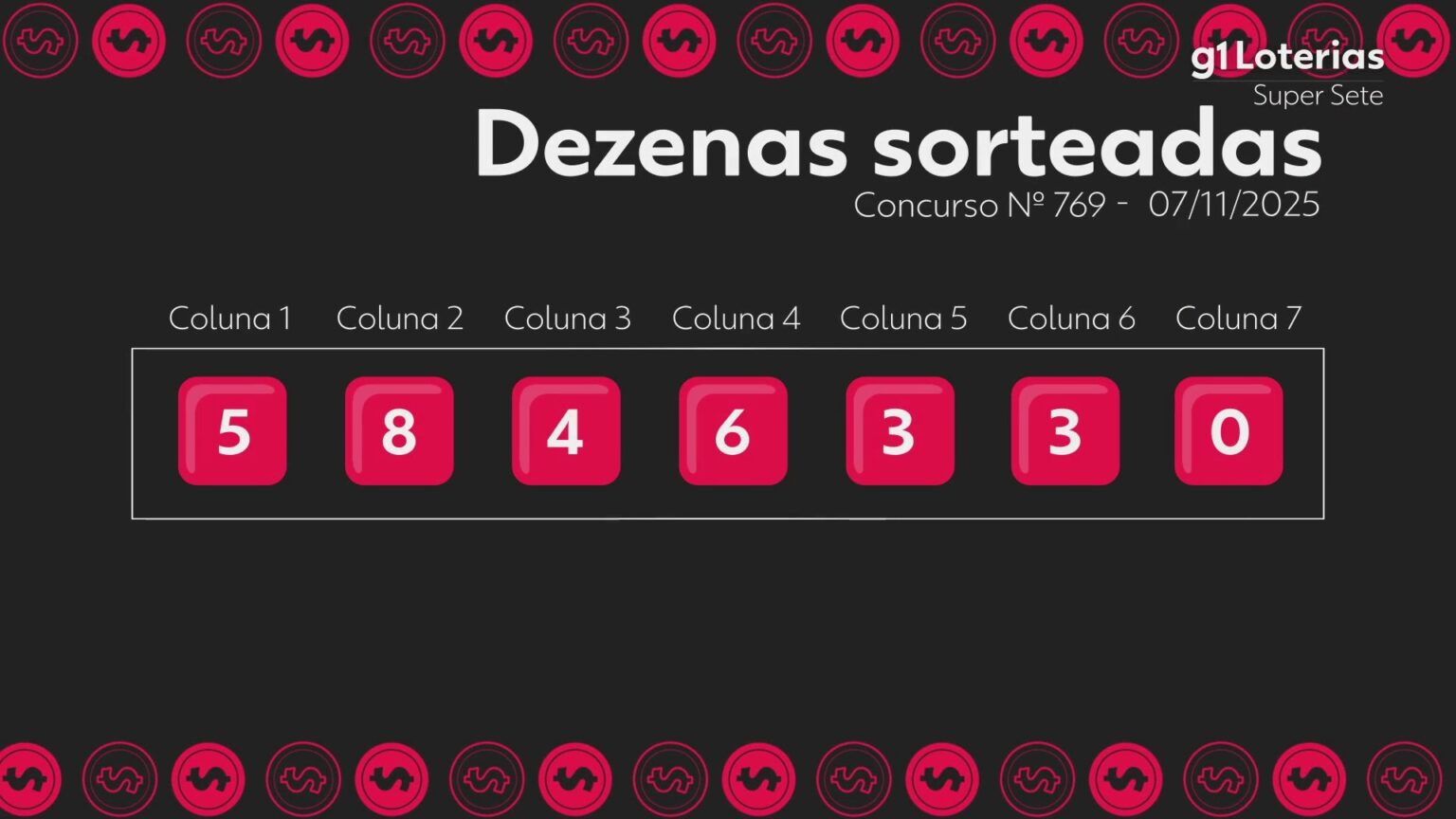 O concurso 769 da Super Sete, realizado nesta sexta-feira (7), não teve ganhadores com 7 acertos. Com isso, a premiação acumulou e o próximo sorteio, que será realizado na segunda-feira (10), terá um prêmio estimado em R$ 4,2 milhões.