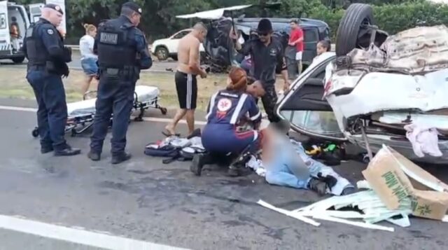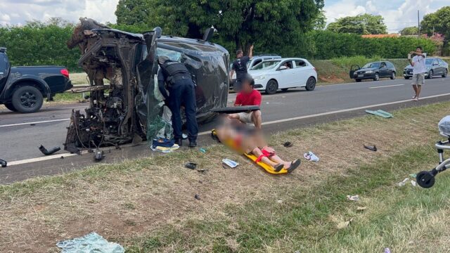 De acordo com informações apuradas no local, um Toyota preto, conduzido por um homem de 37 anos, seguia em alta velocidade quando atingiu violentamente a traseira de um Onix branco que trafegava à frente. Com o impacto traseiro, o condutor do Onix perdeu o controle da direção, bateu no guard-rail e capotou, parando do outro lado da rodovia.