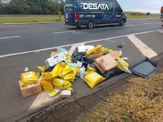 Com o impacto, parte da mercadoria transportada foi arremessada para a pista. A equipe de resgate da concessionária chegou rapidamente, sinalizou o local e evitou a ação de saqueadores colocando a mercadoria no canto