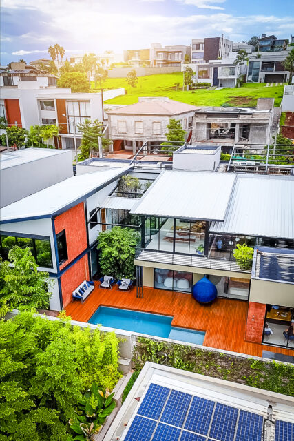 O projeto arquitetônico valoriza ambientes amplos e integrados, com soluções inteligentes que elevam o padrão do imóvel. A residência é totalmente automatizada, com controle inteligente de iluminação, som e climatização, além de ambientes climatizados por sistema de ar-condicionado integrado, garantindo praticidade e conforto no dia a dia.