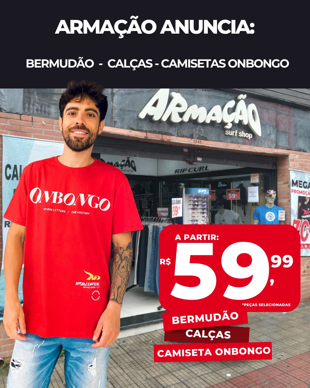 A loja Armação anuncia o Mês do Preço Baixo com ofertas especiais da Onbongo. Camisetas a partir de R$ 59,99, calças jeans a partir de R$ 59,99 e bermudas jeans também a partir de R$ 59,99. É a oportunidade ideal para renovar o guarda-roupa com qualidade e estilo pagando pouco. As compras podem ser parceladas em até 10 vezes sem juros. A promoção é por tempo limitado.