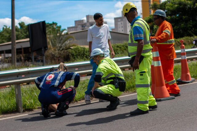 O atendimento foi realizado em conjunto pelas equipes do Samu, responsável pelo socorro do condutor, e pela unidade de resgate da Eixo, que prestou atendimento ao passageiro da motocicleta.