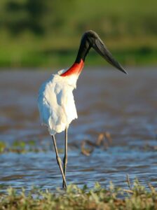 O tuiuiú é uma das aves mais impressionantes do Brasil. De porte imponente, presença inconfundível e elegância rara, ele se destaca pela plumagem branca, pela cabeça preta e pelo detalhe vermelho no pescoço, que o transforma em uma figura quase monumental na paisagem.