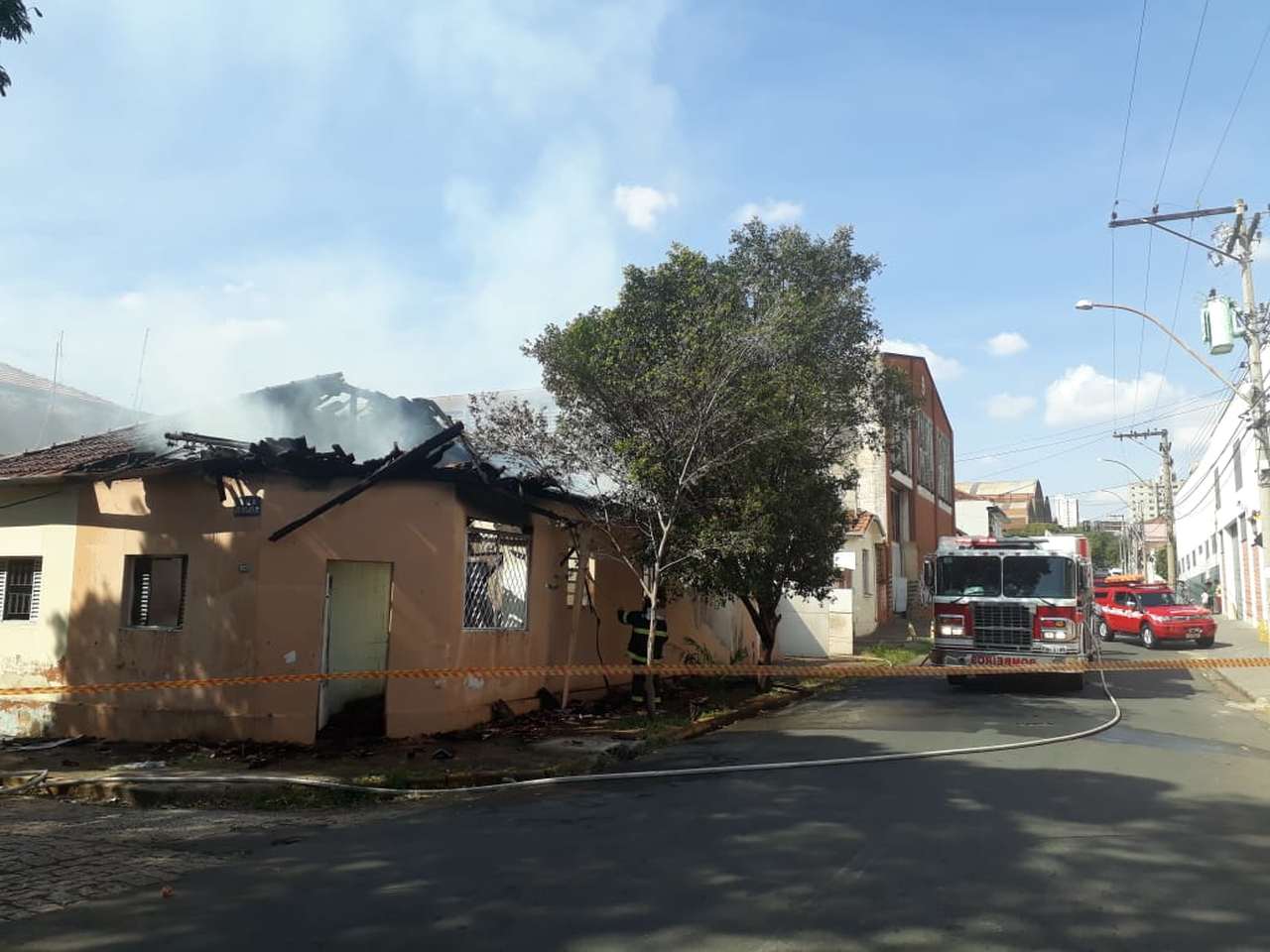 Na imagem podemos ver a casa em chamas