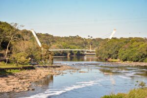 O Rio Piracicaba está com menos de um metro de profundidade na Rua do Porto,…
