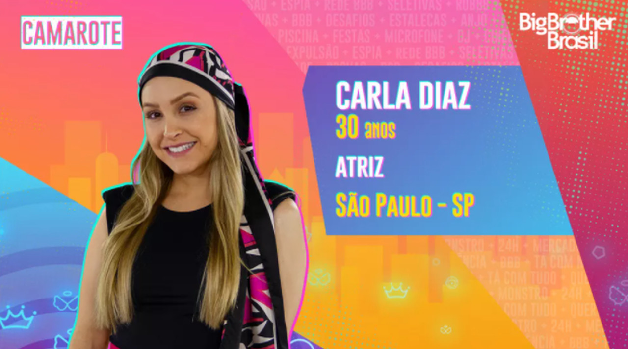 Big Brother Brasil Quem é Carla Diaz do Grupo Camarote do BBB21? Veja tudo sobre Carla Diaz, a segunda celebridade confirmada para o Grupo Camarote do BBB21 19 de janeiro de 2021 • Júnior Cardoso