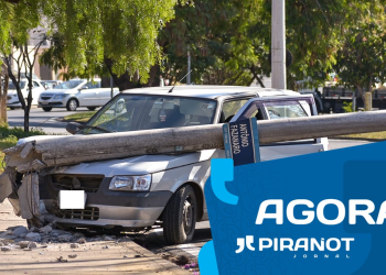 Homem sofre mal súbito no volante, colide carro e derruba poste em Piracicaba