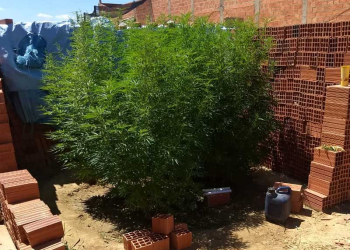 Um homem foi preso por tráfico de drogas após ser flagrado com uma plantação de maconha no quintal de sua ...