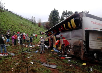 Ao menos quatro passageiros de um ônibus de turismo morreram após o veículo cair em um barranco nesta manhã, em ...