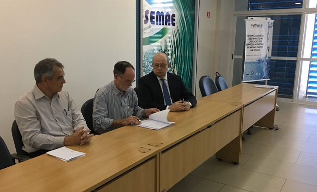 Na manhã desta quarta-feira (7) teve inicio o curso de capacitação sobre mudanças climáticas e o impacto nos serviços de água e esgoto, no auditório do Museu da Água. Na ocasião aconteceu a assinatura do protocolo de intenção para a instalação de um Centro de Formação, Qualificação e Capacitação para cursos técnicos voltados a questão do tratamento de água e esgoto. Além do presidente do Semae, o prefeito Barjas Negri e o presidente da Hydrus, Newton Lima Azevedo, assinaram o protocolo.