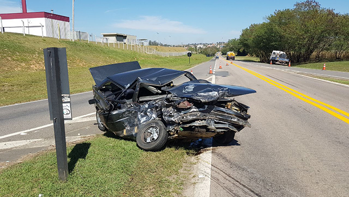 Segundo a Polícia Militar Rodoviária, o condutor do Voyage, com o impacto, foi ejetado para fora do veículo.
