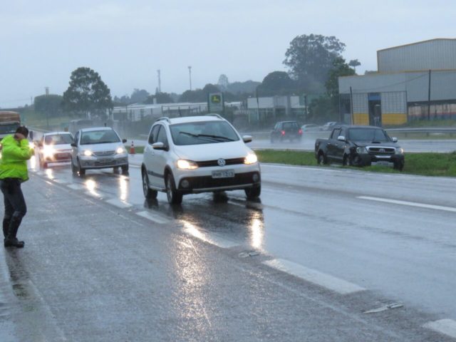 A Polícia Rodoviária alerta para o perigo de dirigir com chuva e solicita aos motoristas que redobrem a atenção nesta quinta-feira, véspera de feriado.