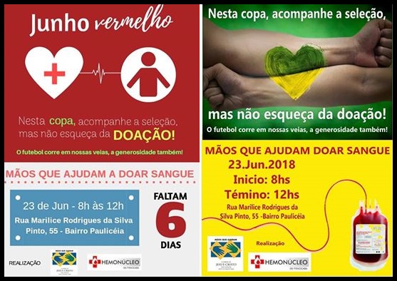 Com ajuda de voluntários, foi lançada a campanha “Mãos que ajudam a doar sangue”, a fim de incentivar não só os moradores do bairro, mas todo o município, a doar sangue.