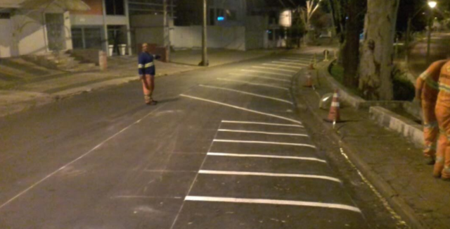 A execução do serviço de sinalização na via foi realizada nesta terça-feira (15), em função de aumentar sete números de vagas para veículos e 18 vagas para motocicletas.