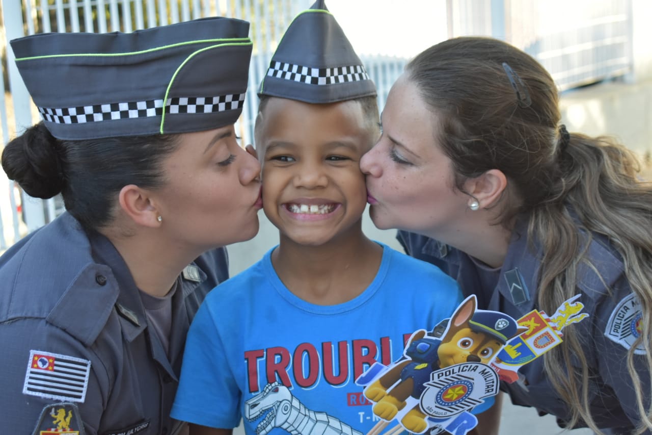 Em Piracicaba, menino de sete anos realiza sonho de comemorar aniversário no quartel da Polícia Militar