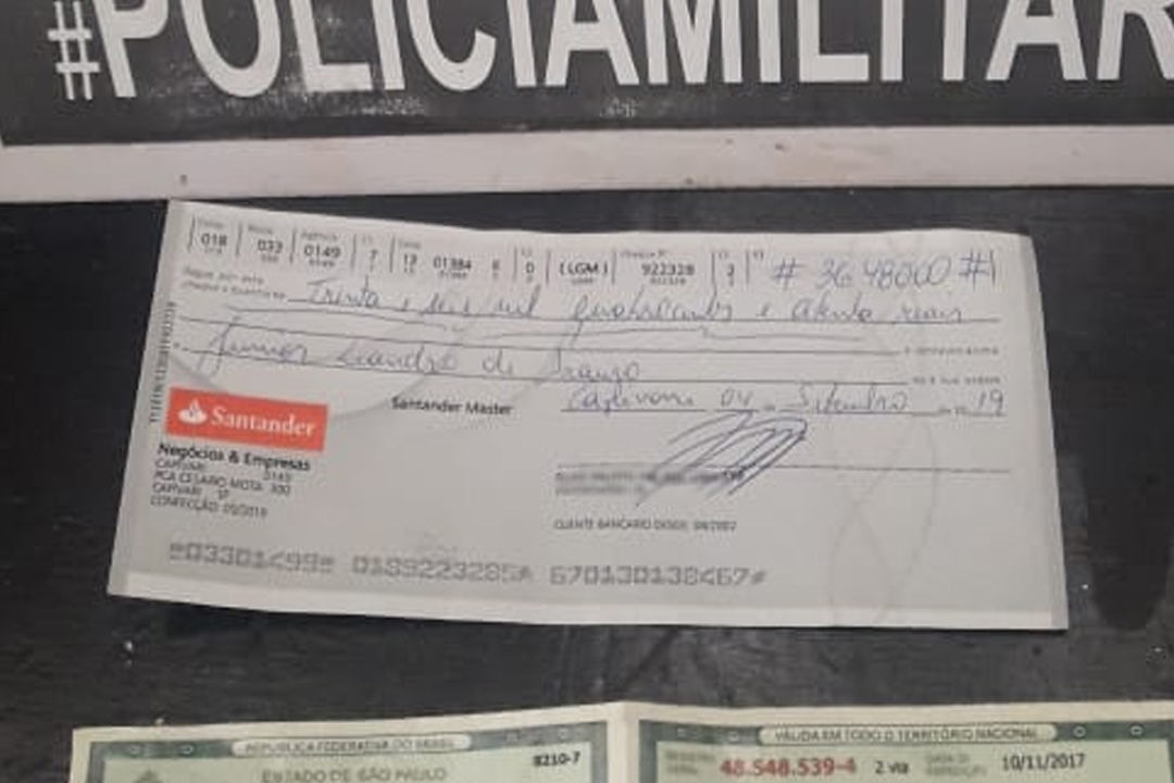 Segundo a PM, a mulher confessou que estava sendo paga para trocar o cheque e que seu RG era falso, e um homem esperava ela fora da agência. De acordo com o depoimento da jovem, ela é da cidade de Sumaré, e iria receber a quantia de R$ 1.000,00 reais.