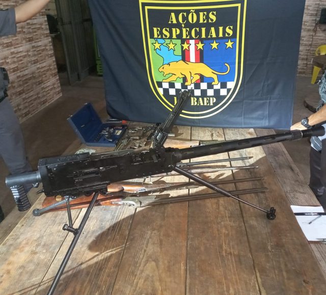 Policiais militares do 10º BAEP (Batalhão de Ações Especiais de Polícia) de Piracicaba (SP) apreenderam uma metralhadora antiaérea, nove espingardas, seis revólveres, além de diversas munições e carregadores. As armas eram utilizadas pelo crime organizado em roubos a carros-fortes. A ocorrência aconteceu em uma chácara no Monte Sinai, em Hortolândia, na tarde desta segunda-feira (16).
