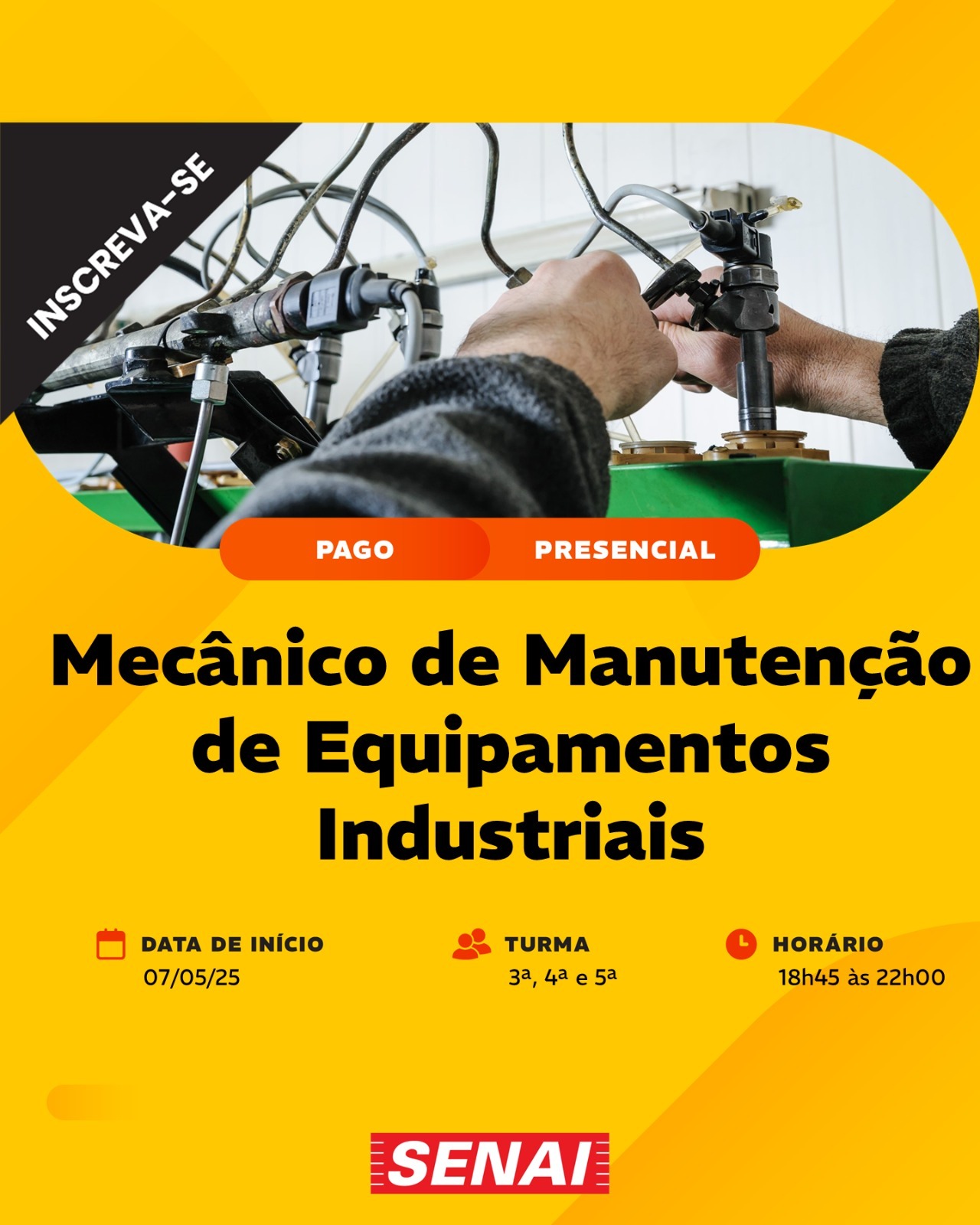 Reconhecida por seu ensino de qualidade, o Senai proporciona formação prática e alinhada às necessidades da indústria, com aulas presenciais e em horários que permitem conciliar estudos com o trabalho, como no período noturno ou aos sábados.