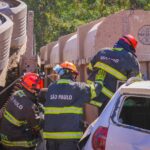 Ela ficou presa nas ferragens, e equipes do Serviço de Atendimento Móvel de Urgência (Samu) e do Corpo de Bombeiros foram acionadas. Os socorristas tentaram reanimá-la, mas, infelizmente, o óbito foi constatado ainda no local. A carreta permanece tombada na pista, e o motorista sofreu apenas ferimentos leves. A Polícia Civil e a Polícia Científica foram chamadas para investigar as causas do acidente.”