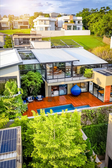 O lazer é um dos pontos altos da casa. O home cinema, com capacidade para até 12 pessoas, conta com tecnologia de última geração. O salão de jogos abriga uma exclusiva mesa de sinuca Mula Preta, enquanto a área gourmet, equipada com mesa de madeira maciça, integra os ambientes internos e externos, criando um espaço ideal para receber convidados.
